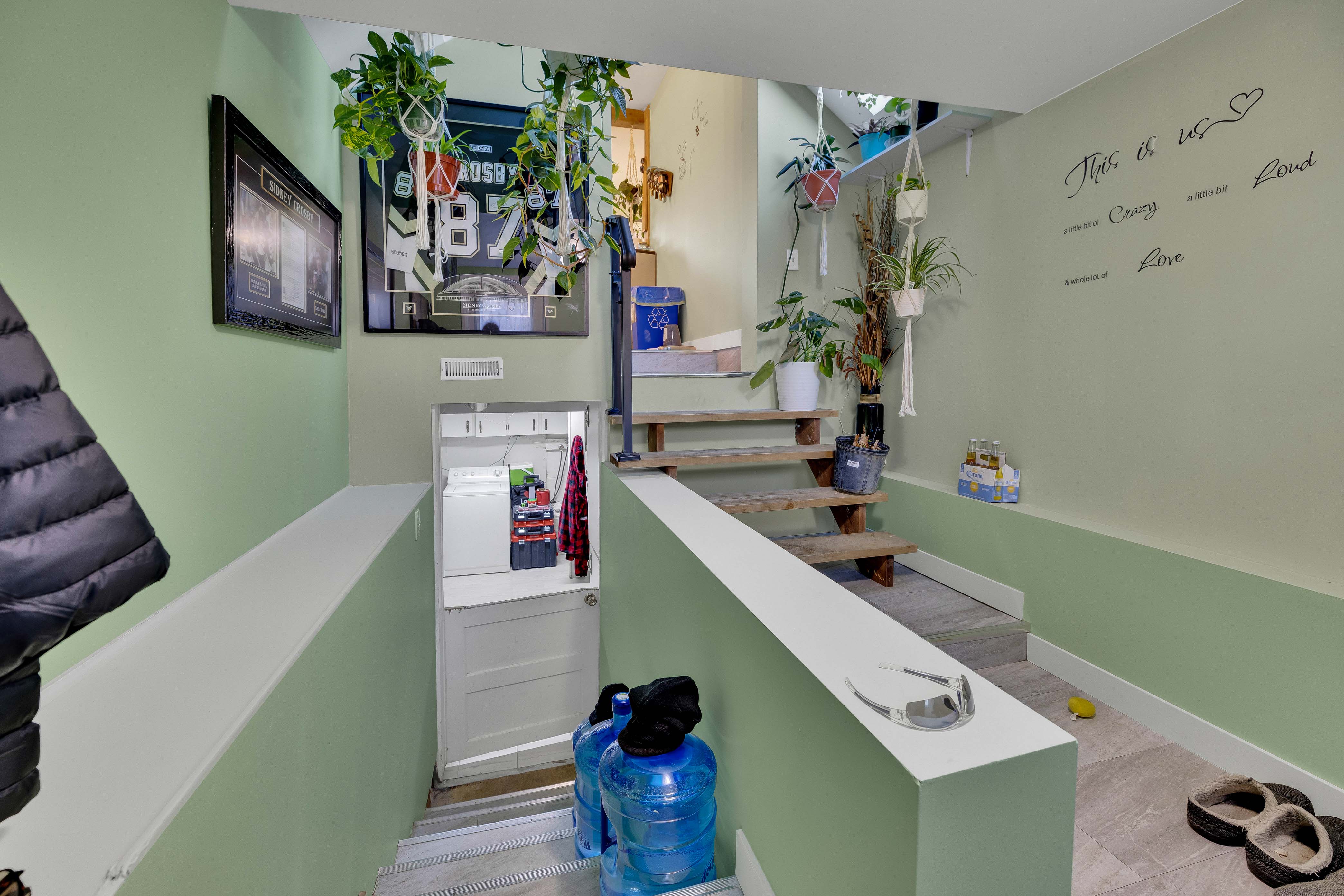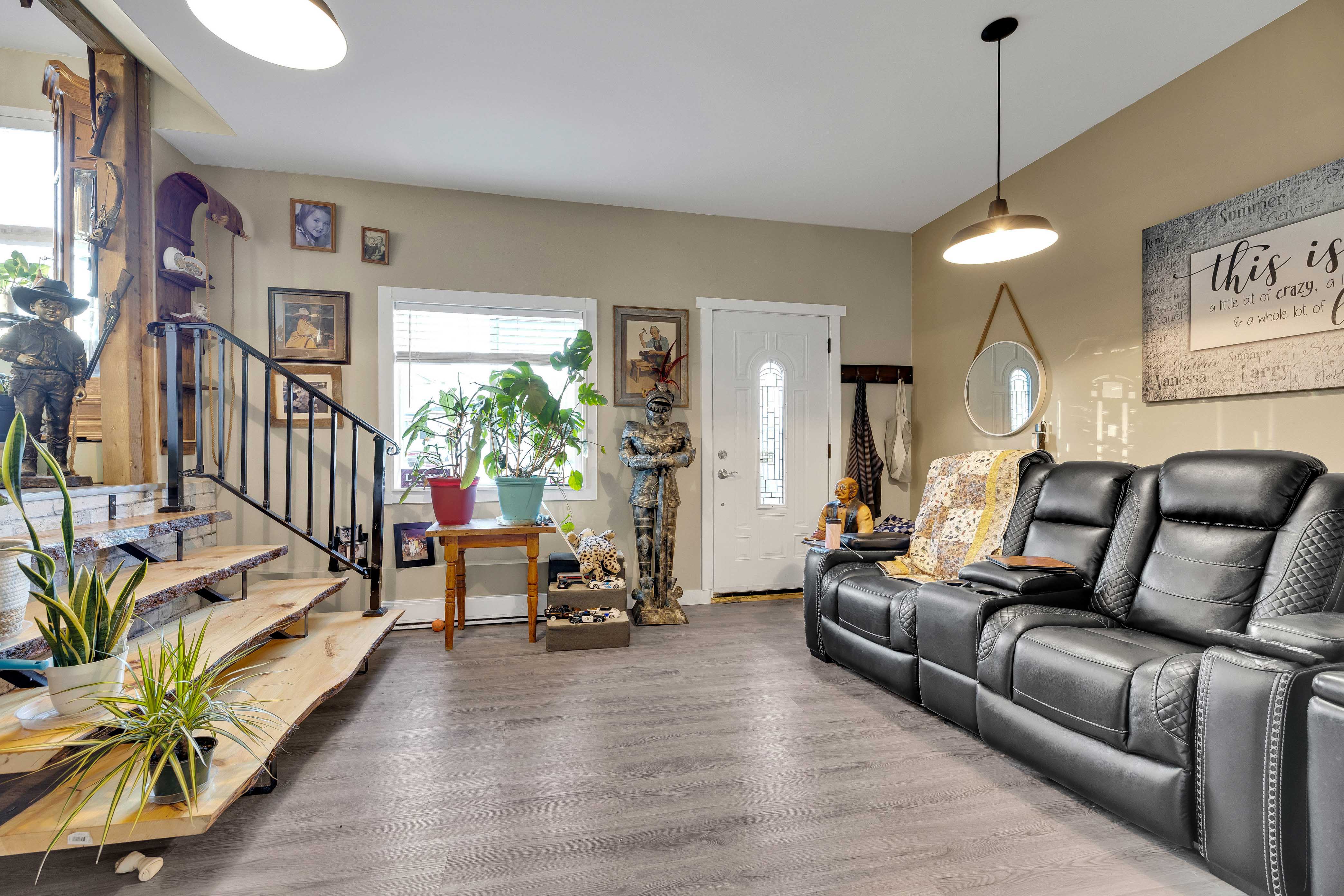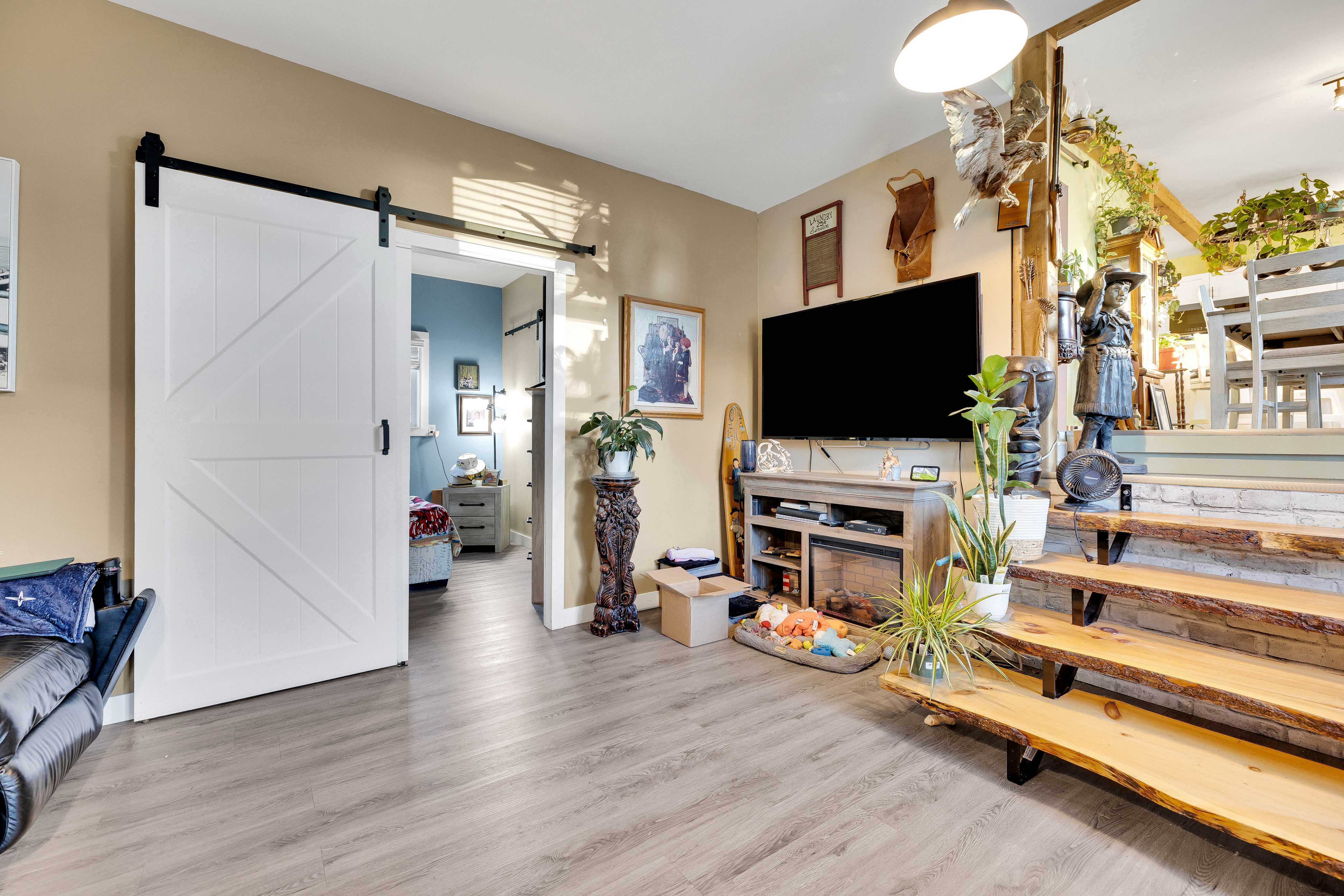 This newly updated 2 bedroom, 2 bathroom home perfectly blends modern upgrades with character. Featuring sleek fixtures throughout, the home is move-in ready and offers a spacious, flowing layout. The main floor includes a bright kitchen with plenty of cupboard space, stainless steel appliances, and abundant natural light. This opens into a dining area with beautiful wooden stairs leading down to the living room. Adjacent to the living room, you'll find a bedroom with a large closet. The main floor also features a stylish bathroom with a large soaker tub. The lower level includes a partially finished rec room, offering flexible space for entertainment or a home office, along with plenty of storage. The backyard is a standout, with a detached workshop ideal for hobbies, tools, or extra storage. With modern updates, a great layout, and plenty of outdoor space, this home is the perfect place to call your own.
