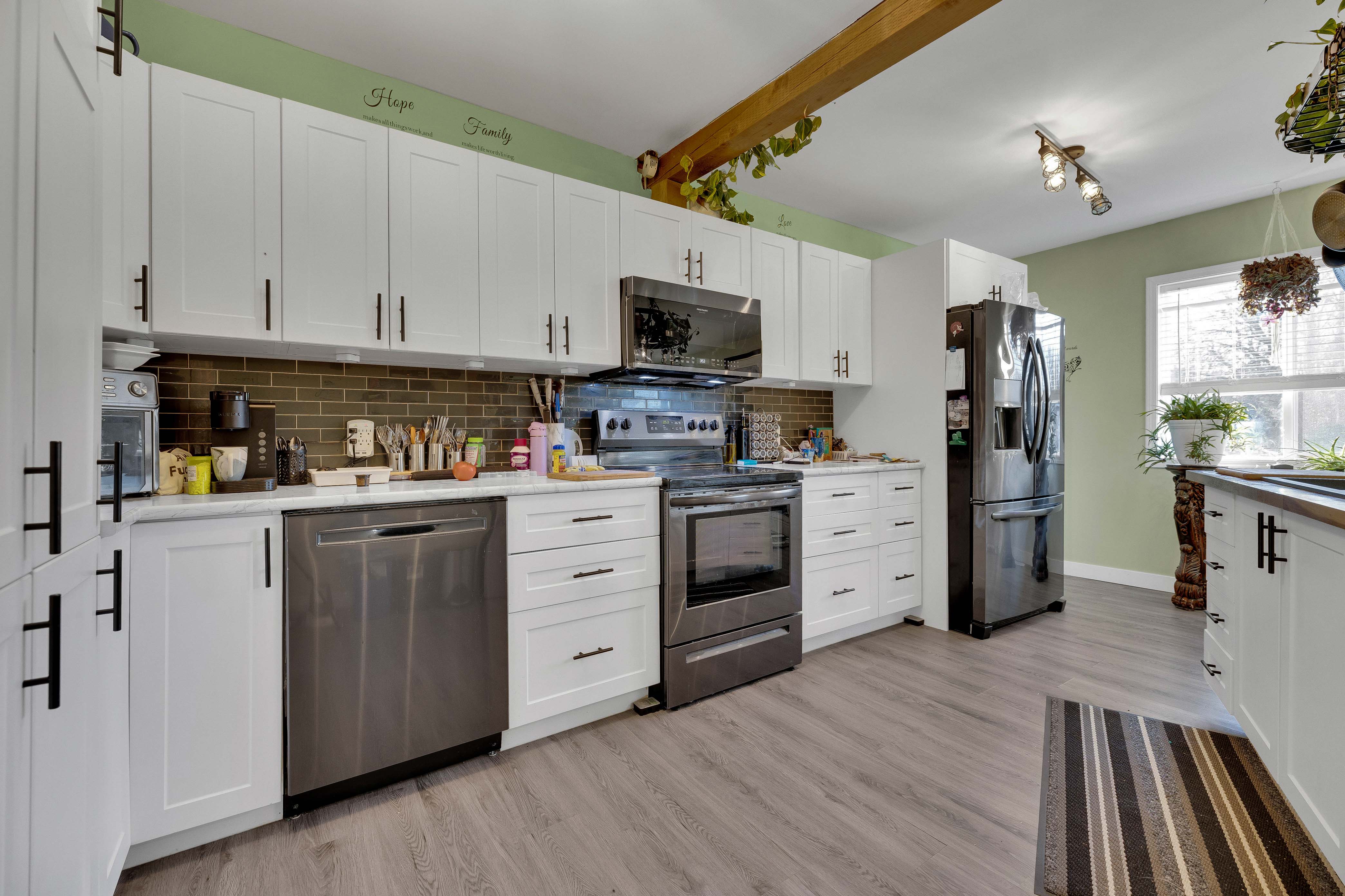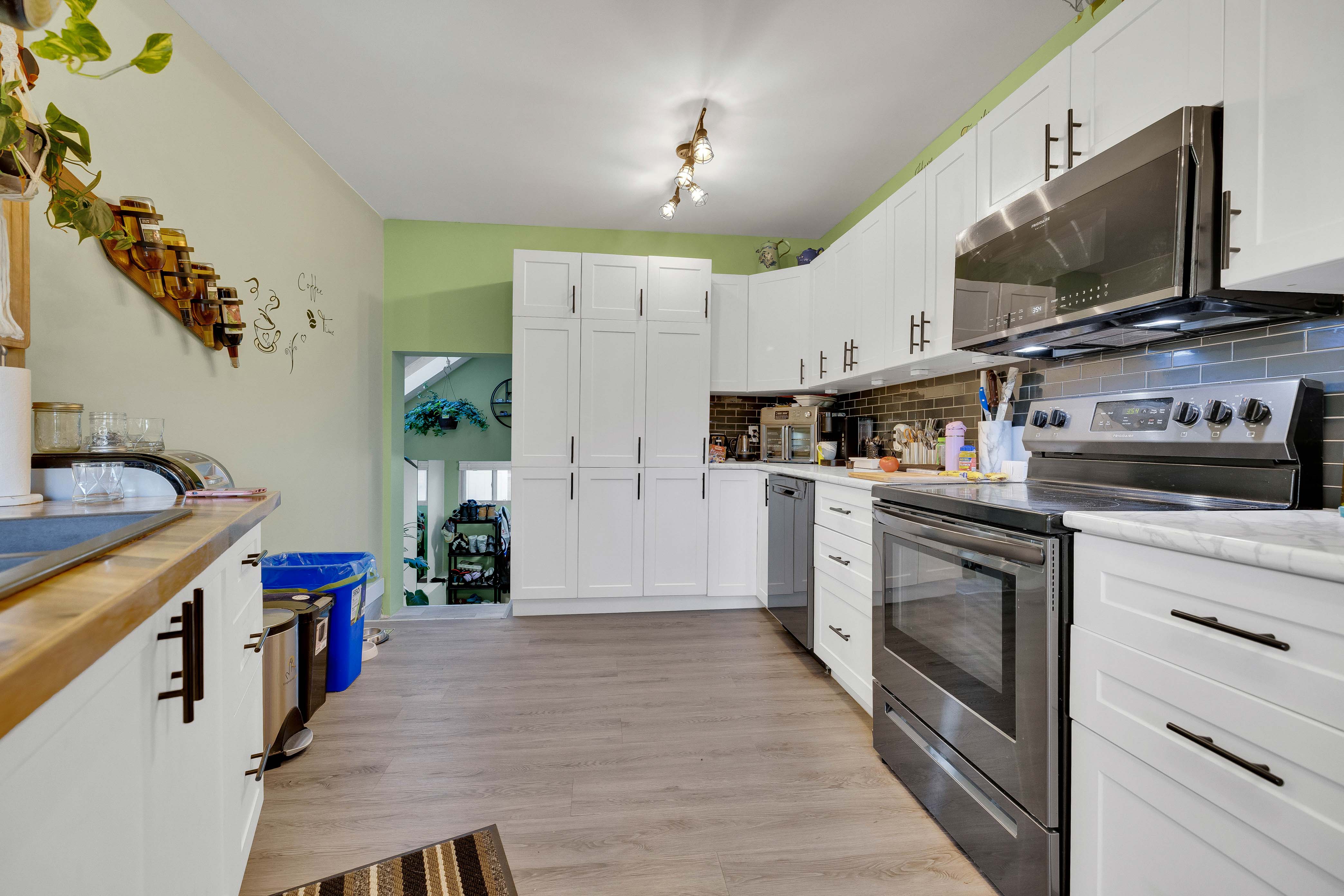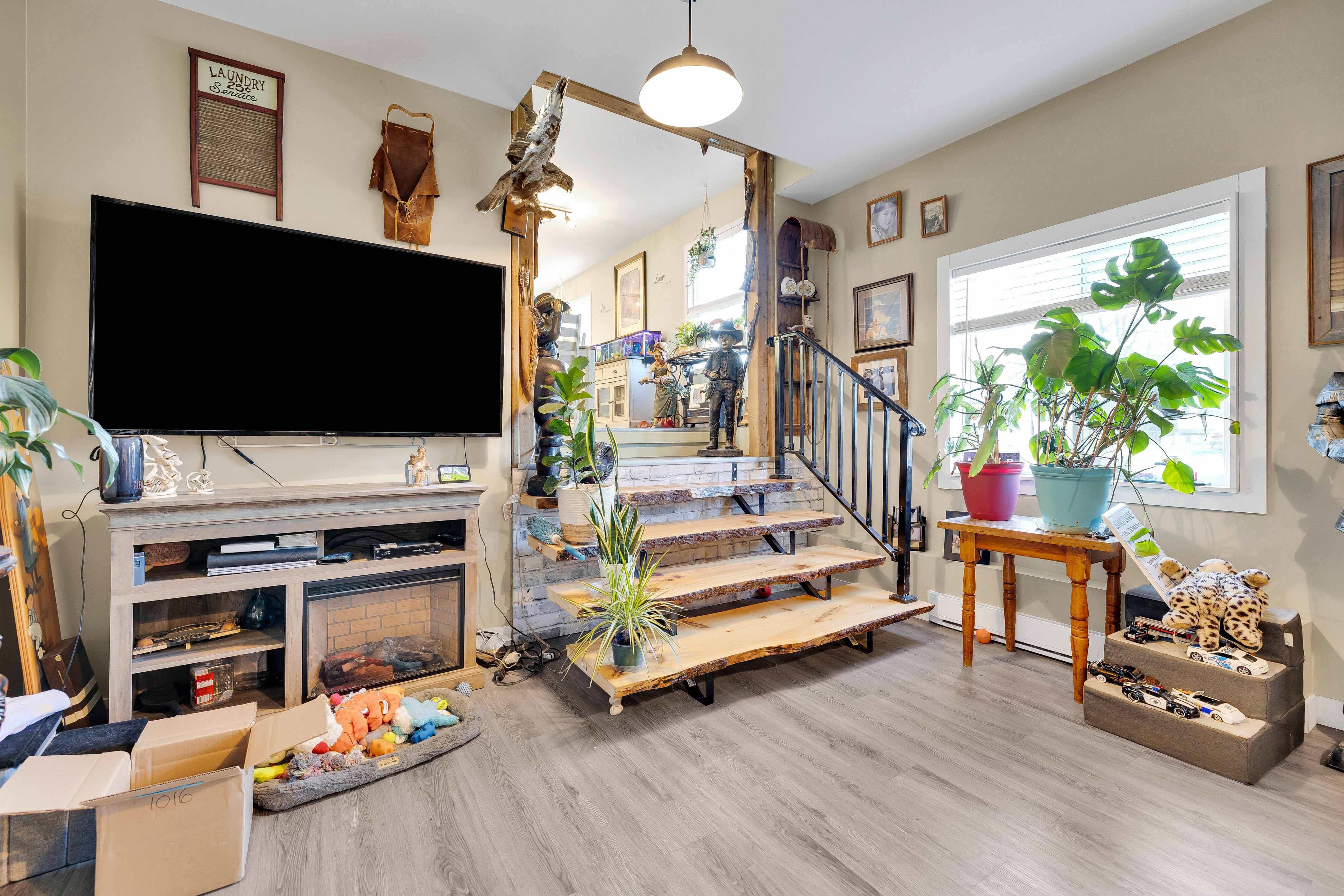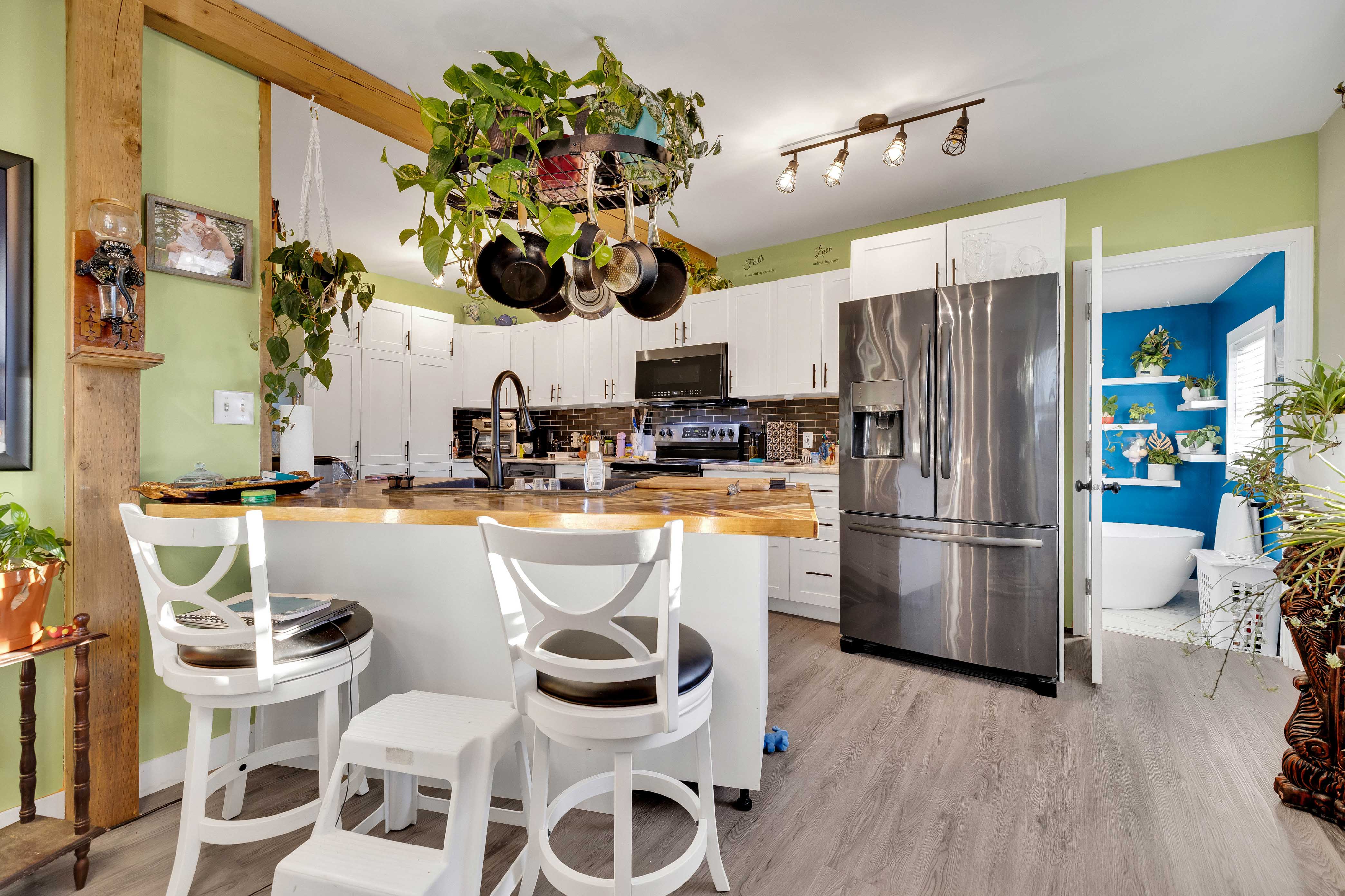 This newly updated 2 bedroom, 2 bathroom home perfectly blends modern upgrades with character. Featuring sleek fixtures throughout, the home is move-in ready and offers a spacious, flowing layout. The main floor includes a bright kitchen with plenty of cupboard space, stainless steel appliances, and abundant natural light. This opens into a dining area with beautiful wooden stairs leading down to the living room. Adjacent to the living room, you'll find a bedroom with a large closet. The main floor also features a stylish bathroom with a large soaker tub. The lower level includes a partially finished rec room, offering flexible space for entertainment or a home office, along with plenty of storage. The backyard is a standout, with a detached workshop ideal for hobbies, tools, or extra storage. With modern updates, a great layout, and plenty of outdoor space, this home is the perfect place to call your own.