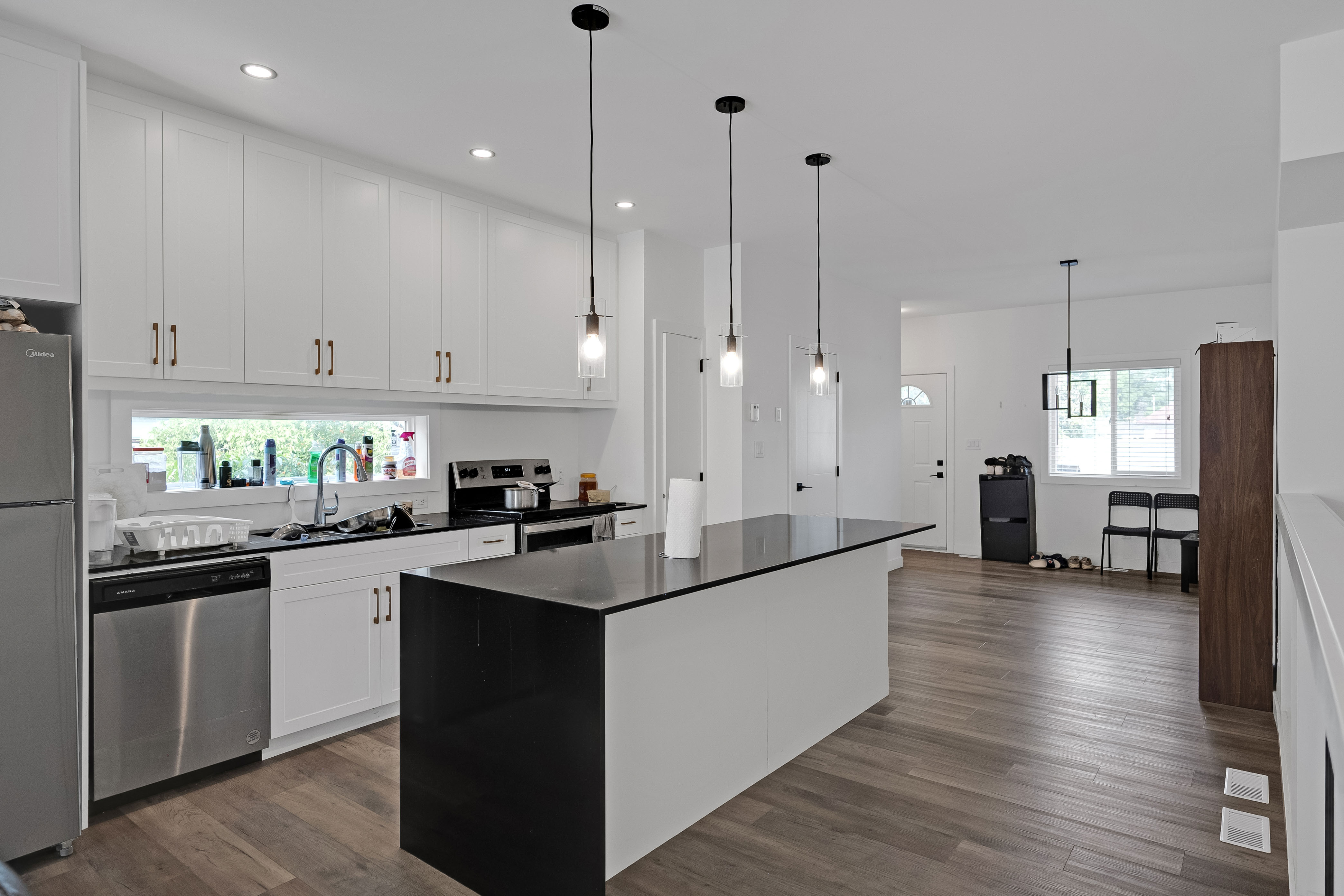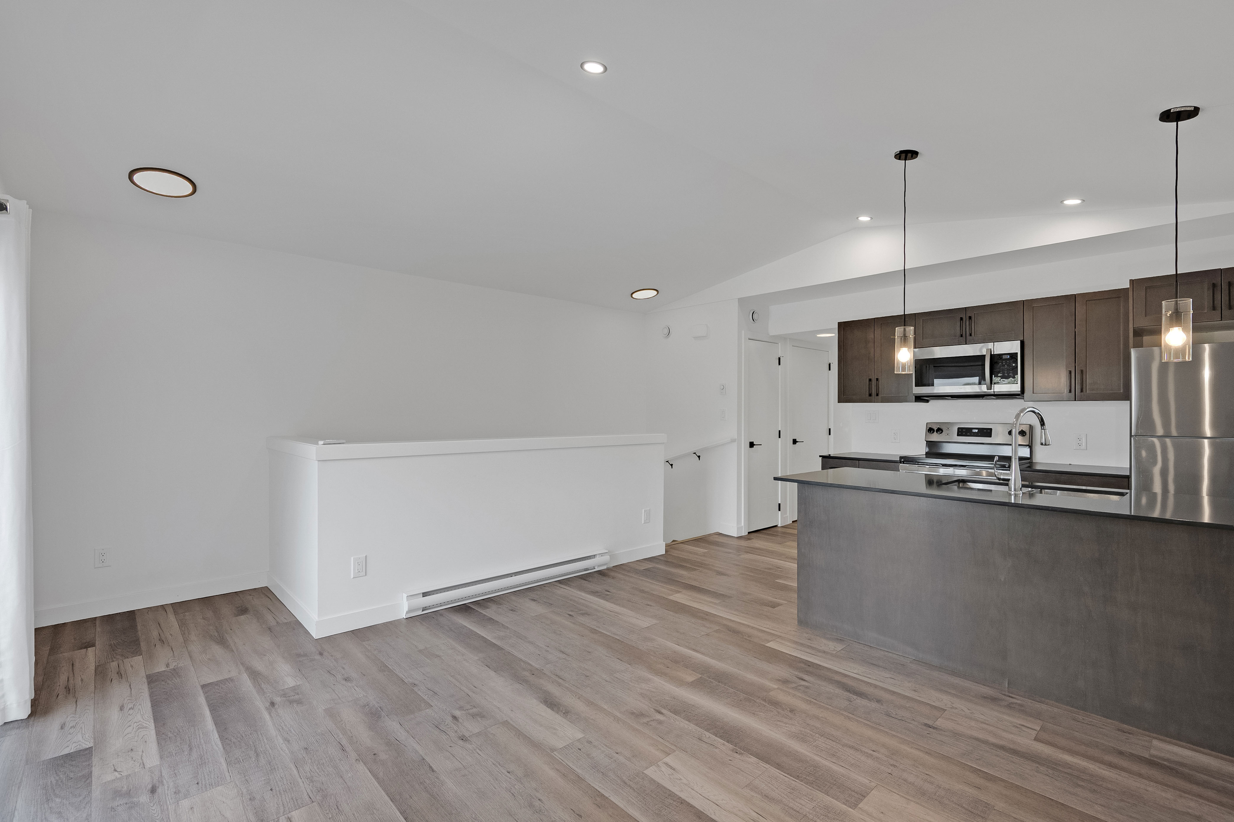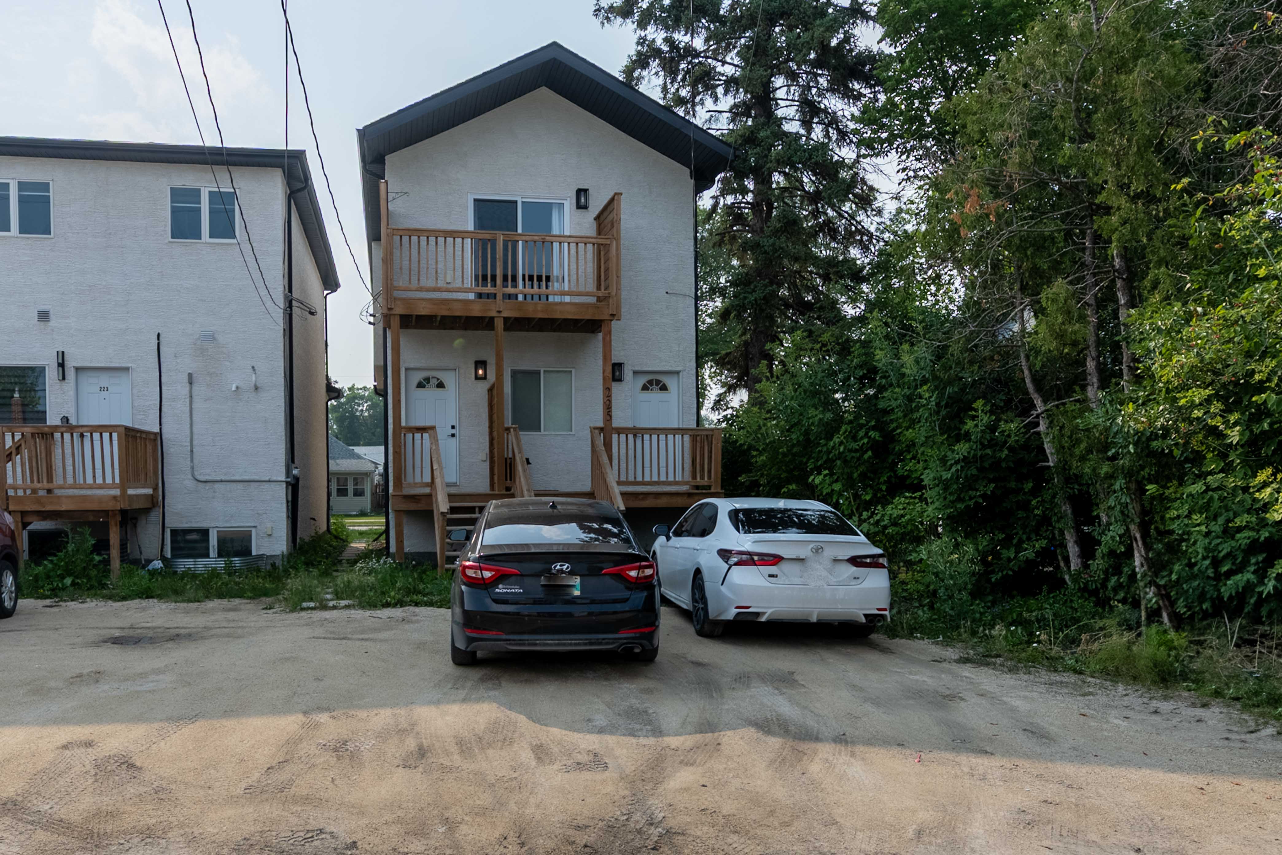 PASSIVE INCOME OPPORTUNITY! Nearly new duplex in the convenient, popular area of St. James. The exterior showcases stucco, high-quality horizontal plank siding, and expansive windows. Inside the main level, oversized windows fill the open-concept living and entertaining space with natural light, complemented by 9-foot ceilings. Both suites feature stylish kitchens equipped with stainless steel appliances, over-the-range microwaves, and convenient bar-top seating. A powder room completes the main floor layout. Downstairs, you'll find three spacious bedrooms, two full bathrooms, and in-suite laundry. The primary bedroom includes its own private ensuite. The upper-level suite is accessed from the rear and boasts vaulted ceilings in the living, dining, and kitchen areas, along with a private balcony, two bedrooms, one full bath, and its own private laundry. Additional highlights throughout include quartz countertops, sleek undermount sinks, smooth flat-finish ceilings, modern pot lighting, and separately metered utilities for each suite. Main floor unit is rented at $1850 a month. Upper unit is rented at $1300 a month. Your investment portfolio awaits!