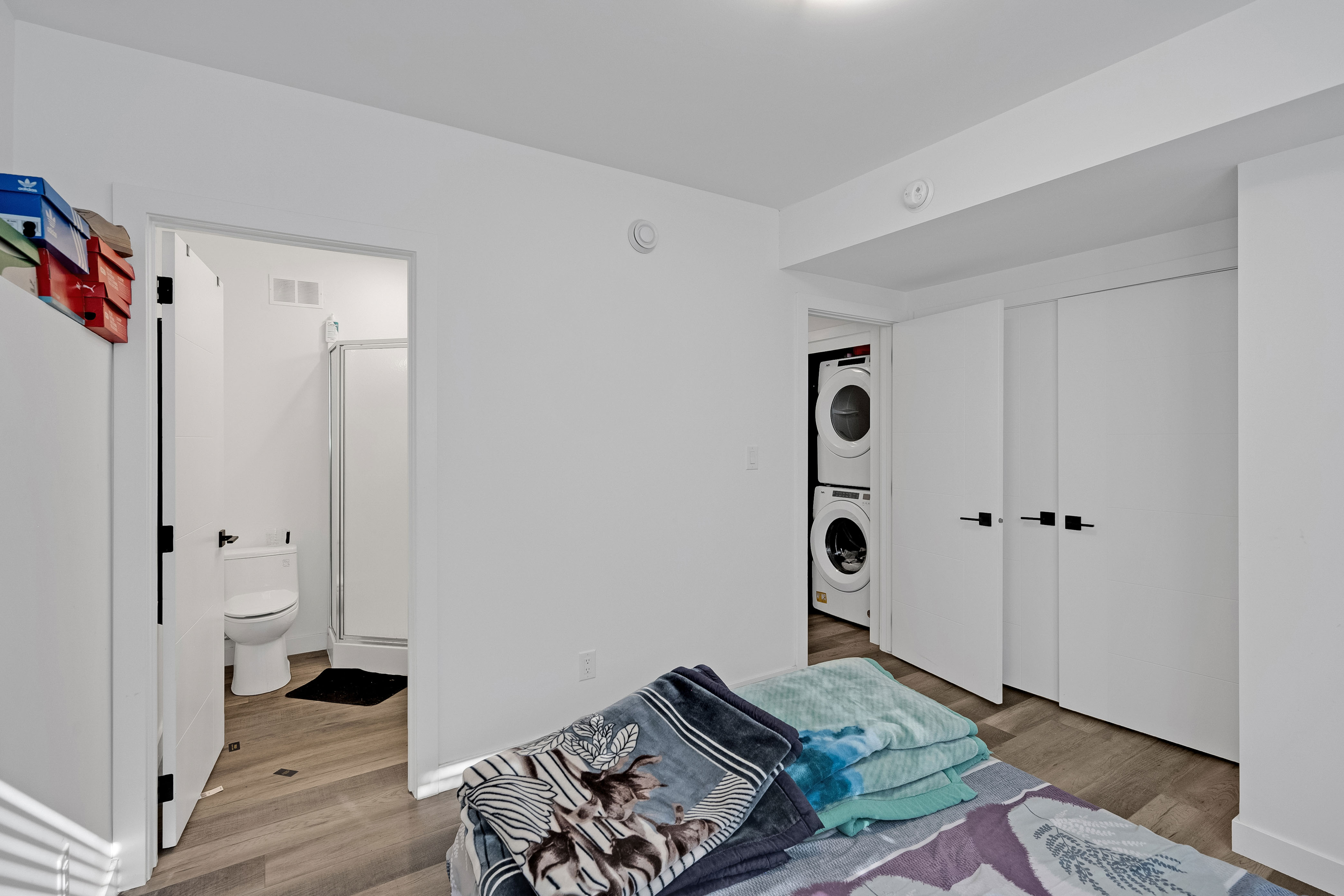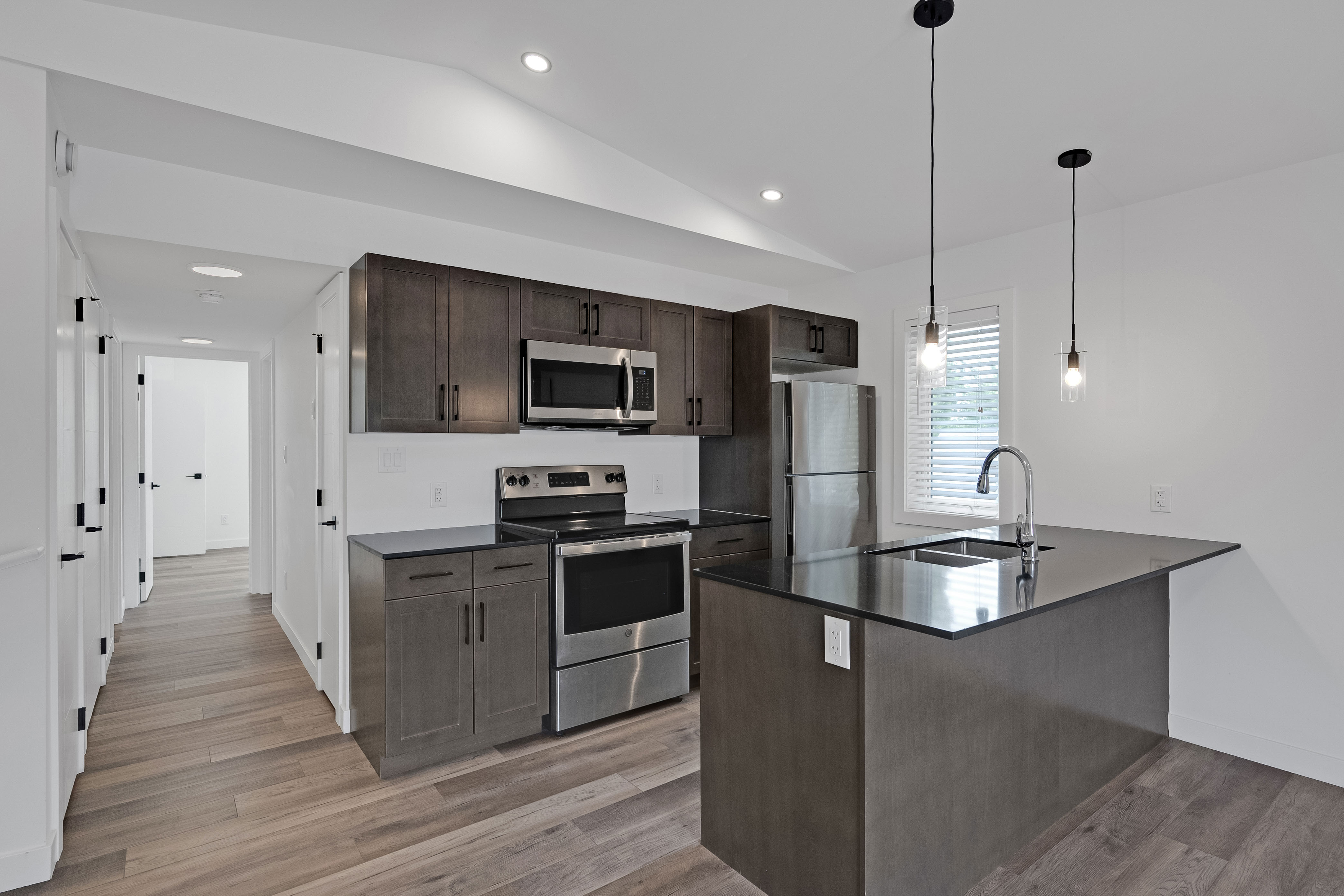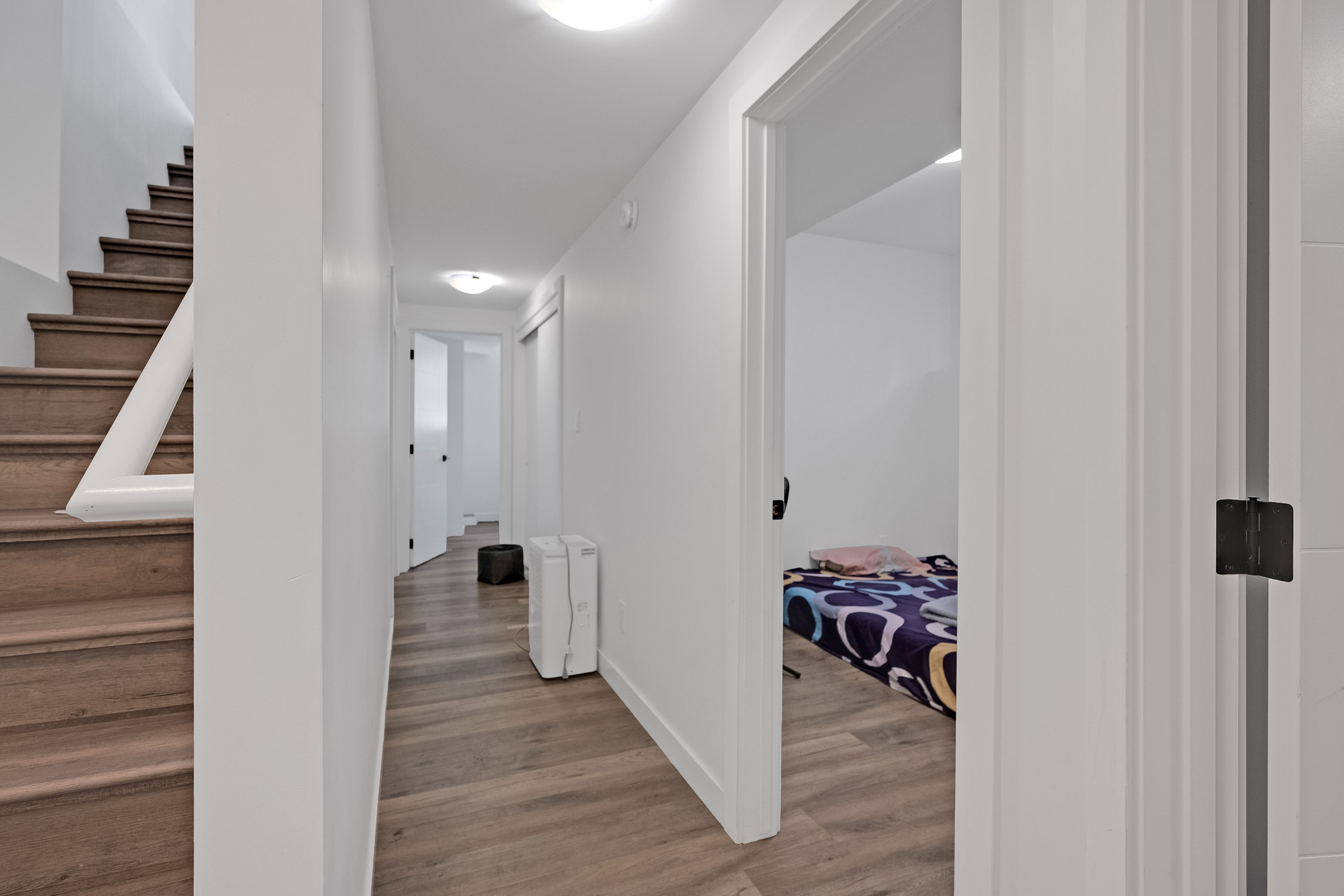 PASSIVE INCOME OPPORTUNITY! Nearly new duplex in the convenient, popular area of St. James. The exterior showcases stucco, high-quality horizontal plank siding, and expansive windows. Inside the main level, oversized windows fill the open-concept living and entertaining space with natural light, complemented by 9-foot ceilings. Both suites feature stylish kitchens equipped with stainless steel appliances, over-the-range microwaves, and convenient bar-top seating. A powder room completes the main floor layout. Downstairs, you'll find three spacious bedrooms, two full bathrooms, and in-suite laundry. The primary bedroom includes its own private ensuite. The upper-level suite is accessed from the rear and boasts vaulted ceilings in the living, dining, and kitchen areas, along with a private balcony, two bedrooms, one full bath, and its own private laundry. Additional highlights throughout include quartz countertops, sleek undermount sinks, smooth flat-finish ceilings, modern pot lighting, and separately metered utilities for each suite. Main floor unit is rented at $1850 a month. Upper unit is rented at $1300 a month. Your investment portfolio awaits!