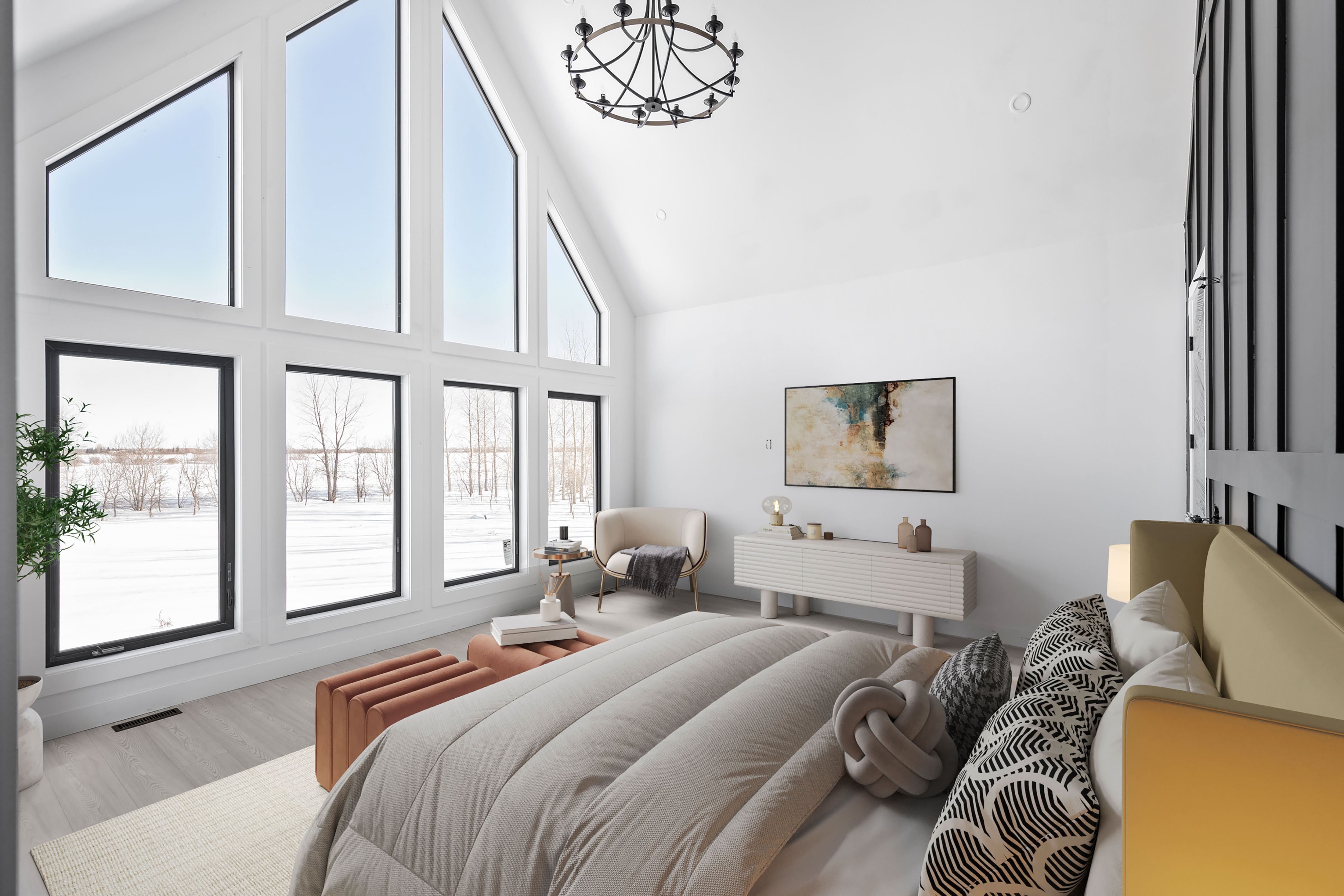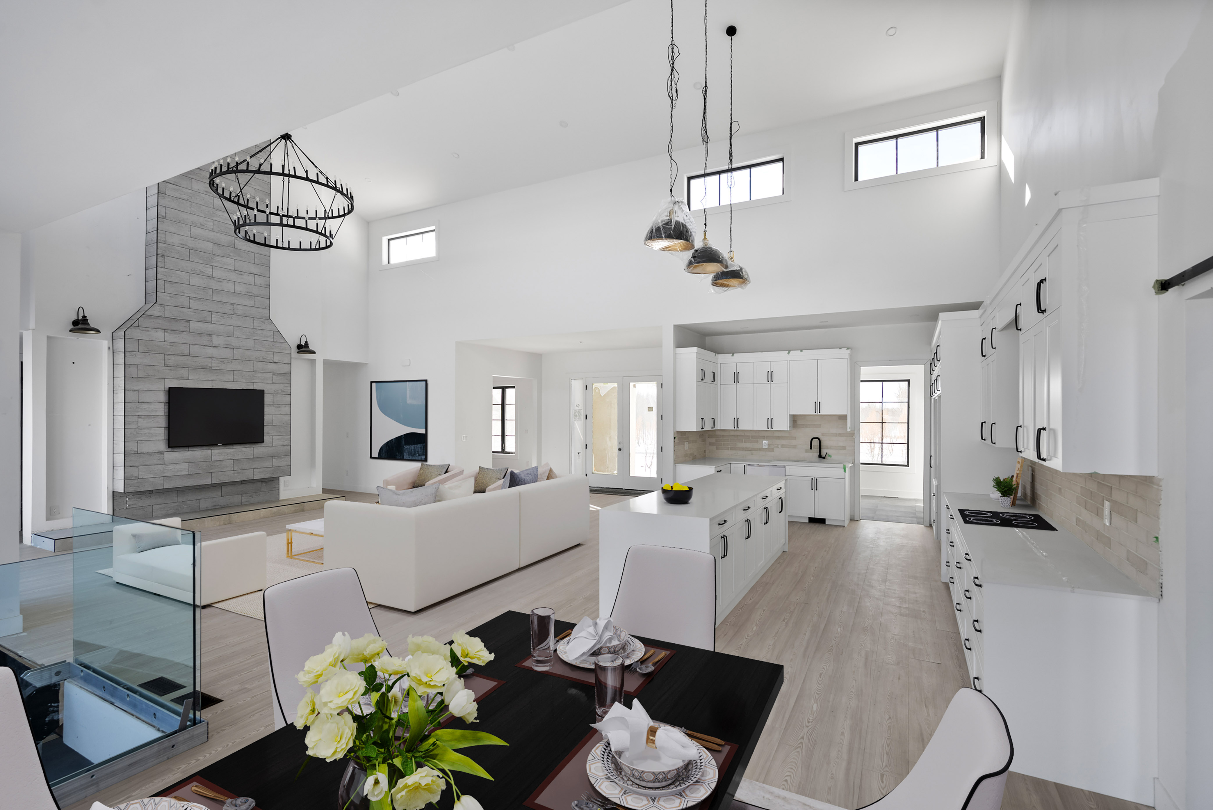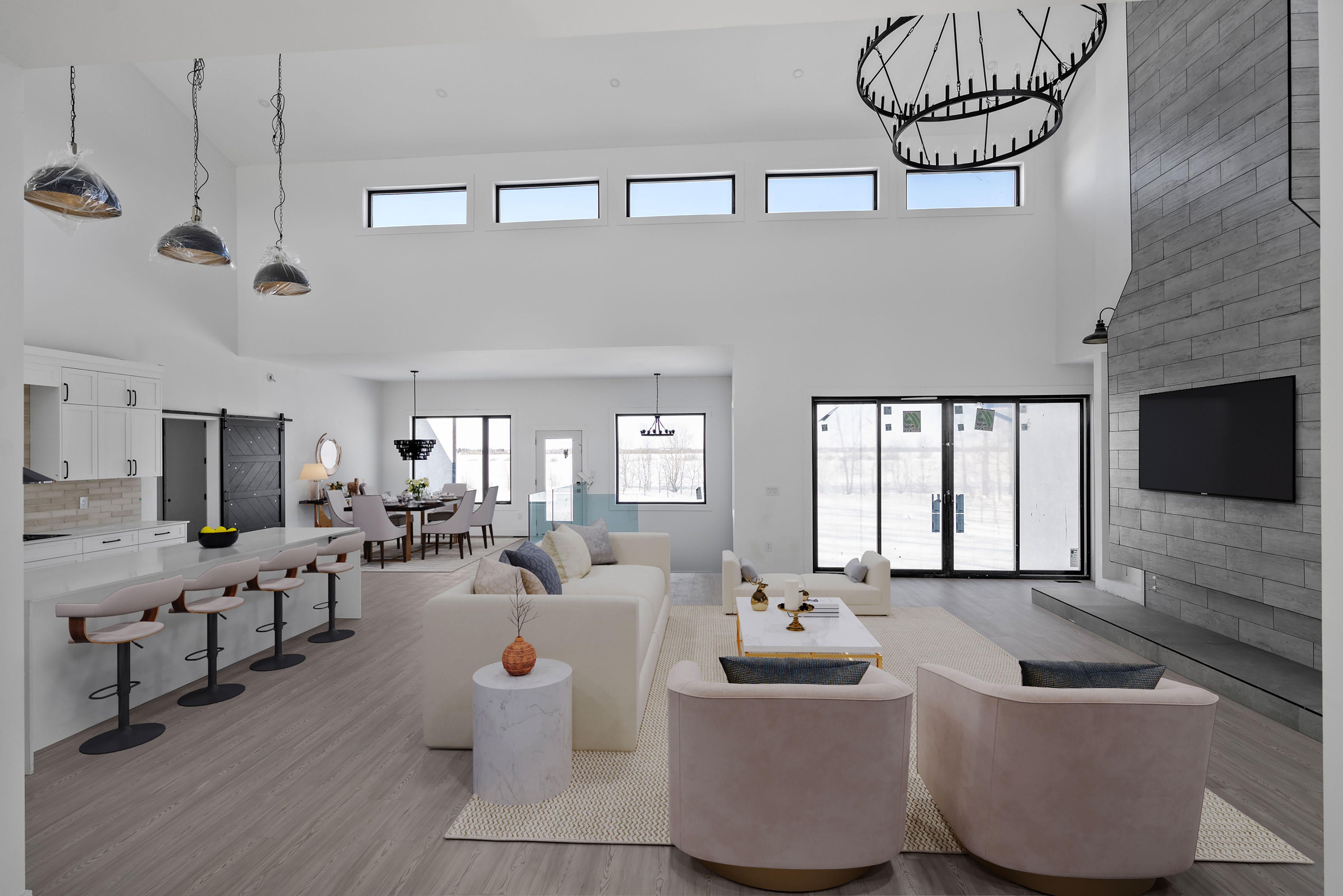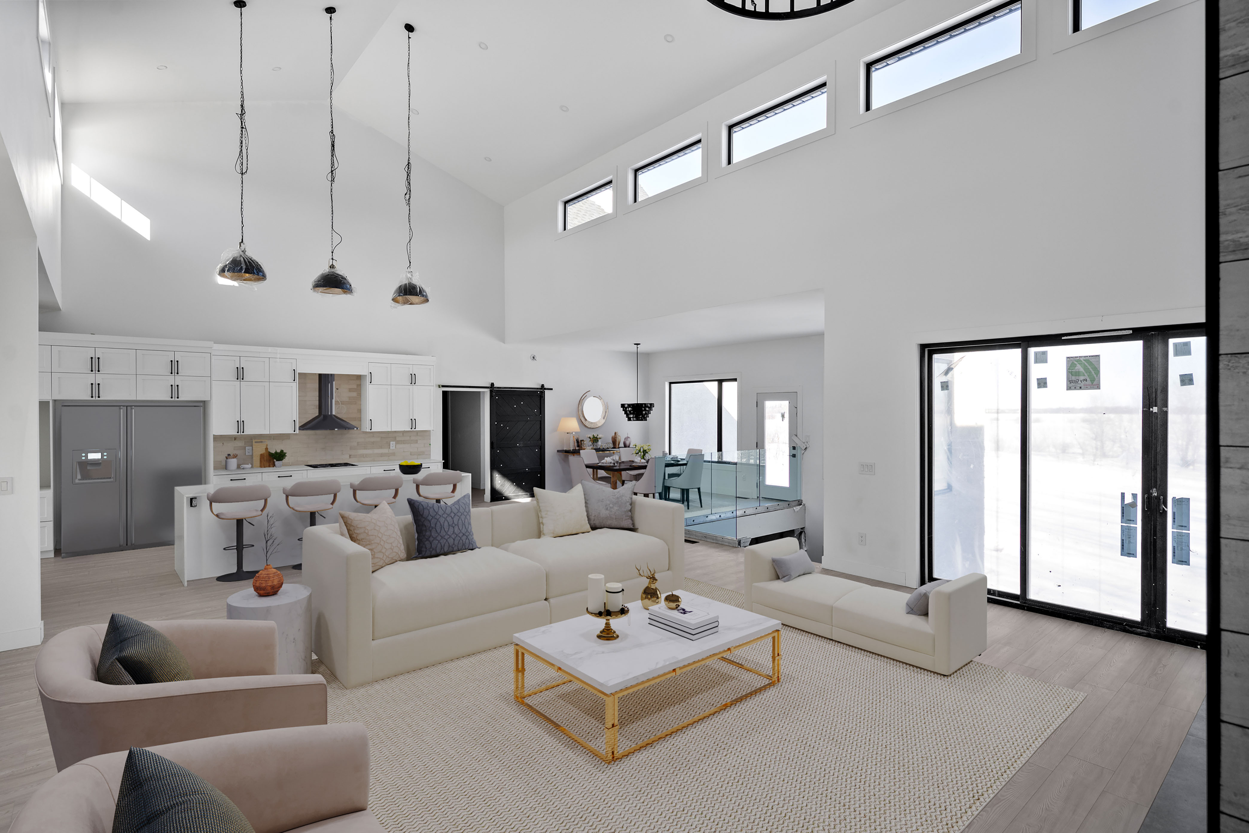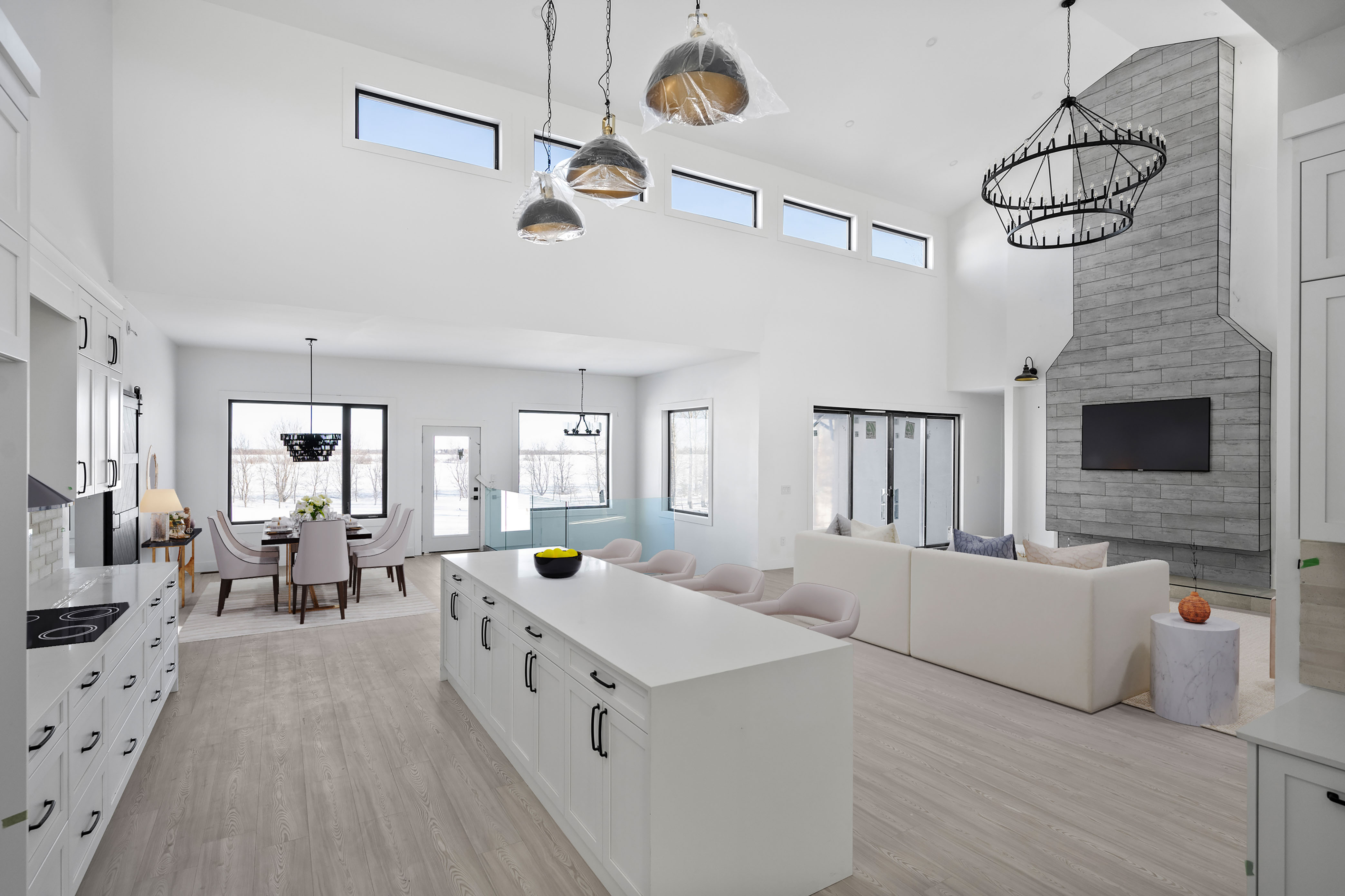 This stunning 3,130 sq ft walkout bungalow offers luxurious living with breathtaking design elements throughout. Soaring 22-ft vaulted ceilings with rich decorative wood beams create a grand and inviting atmosphere. The gourmet kitchen is a chef’s dream featuring a 10-ft island, and high-end finishes. A dedicated, spacious dining room is perfect for entertaining. The home boasts 4 generously sized bedrooms and 2.5 bathrooms with heated tiled flooring for year-round comfort. The primary suite is a true retreat with 18-ft vaulted ceilings, a lavish 5-piece ensuite, and access to a private wraparound balcony. Enjoy seamless indoor-outdoor living with a walkout lower level ready for your personal touch. An oversized 4-car garage offers ample space for vehicles, storage, or a workshop. This home masterfully blends functionality and elegance. Book your showing today! Photos 4-7, 10, 12, 14 and 15 are digitally staged.