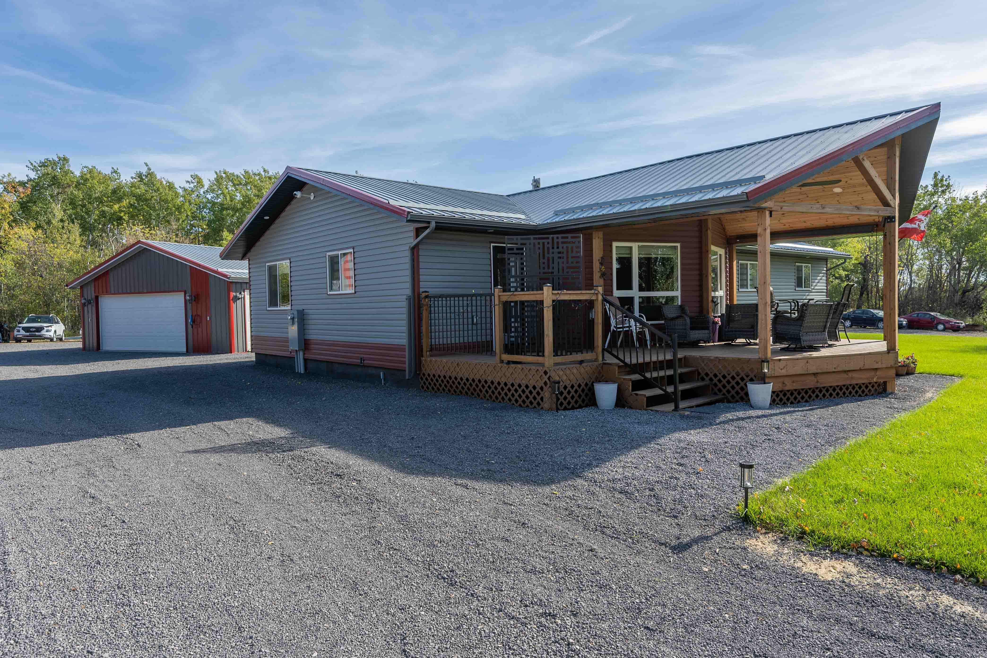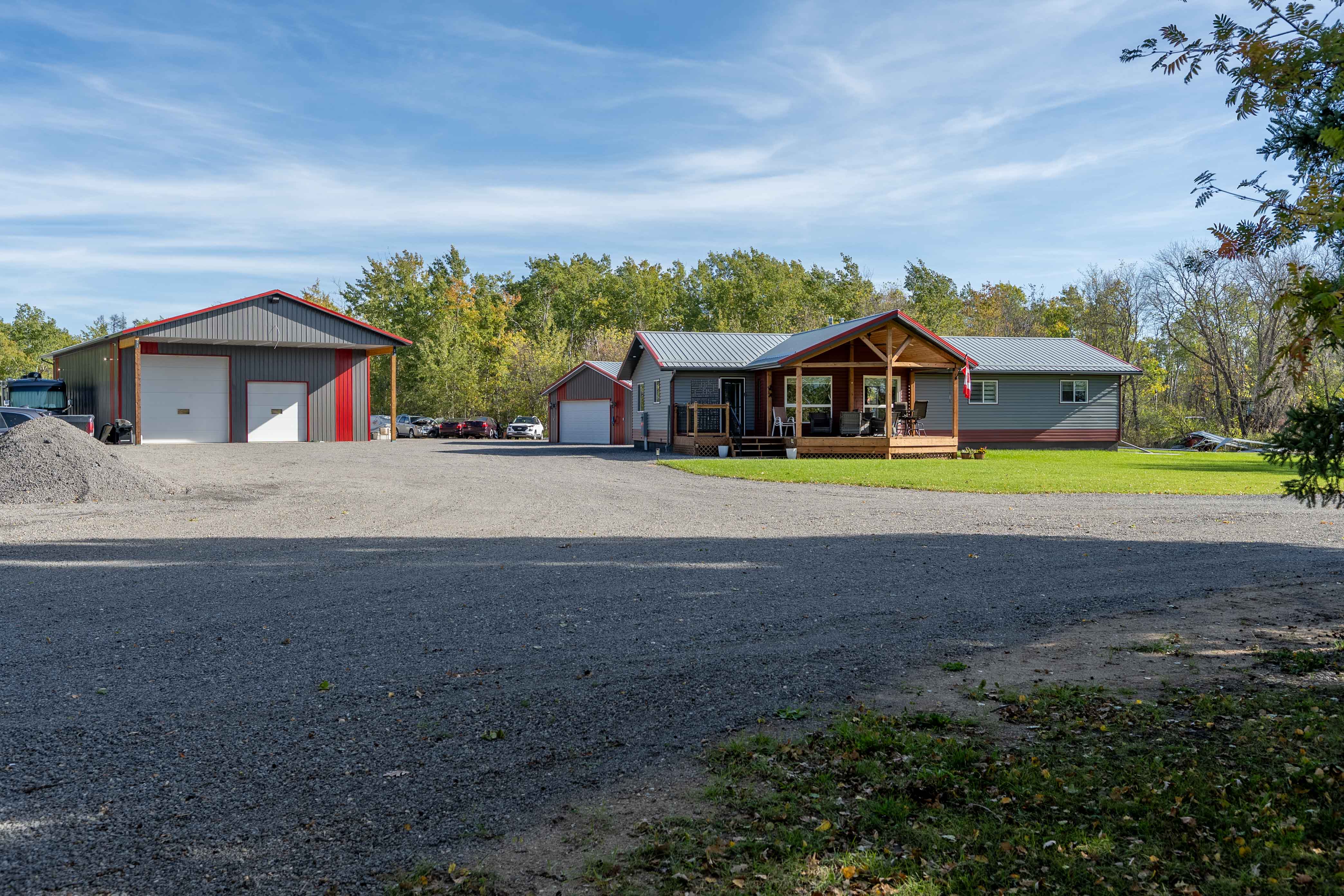 Welcome to an incredible opportunity in St. Clements! A newer custom-built home nestled on a sprawling 133.91-acre compound, offering a unique blend of residential comfort, business potential, and development possibilities. Step inside to a spacious mudroom entry that opens into a bright and airy open-concept living area, seamlessly connected to the dining room and a well-appointed kitchen. The primary suite features a 3-piece ensuite, while two additional bedrooms and a full bathroom complete this thoughtfully designed home. A summer kitchen and a double detached garage add even more versatility. Outdoors, the amenities continue with a large heated shop equipped with 14-foot overhead doors for vehicles and equipment. Two hoop buildings provide additional storage! While the property is not zoned commercial, current owners hold permits to run their businesses on-site, making this an ideal setup for entrepreneurs. The expansive land and existing infrastructure present excellent development potential — whether you're expanding operations or envisioning a new venture. This property is a canvas for your next big move. Whether you're looking to live, work, or build, potential awaits!